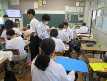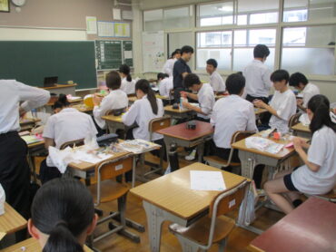 3年3組は、出来上がったら教科担当の先生のところにもってきてチェックを受けて完成です。