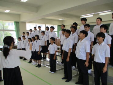 今日から音楽室に合唱コンクール用のアルミの階段がセットされ、本格的な練習に入ります。