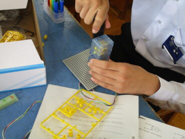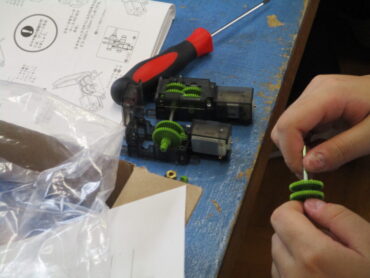 3年生は、技術の授業で校内ロボットコンテストを行います。これは、ギアやリンク機構を使いロボットを作り戦います。3年3組の授業では、ギヤボックスの製作をしている生徒が多くいました。