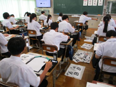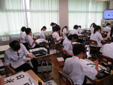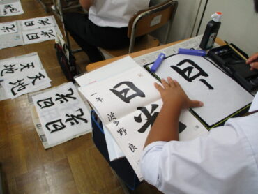時間をみては、教科担当の先生が筆の運びなどを指導されていました。