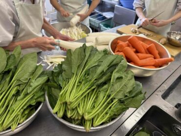 万葉の時代は、あわ・ひえ・麦・豆・米などを主食として栽培し、川で魚を捕ったり木の実を採ったりして食事をしていたそうです。給食では食べやすいように、白米に雑穀の「香紫米」を混ぜた「赤米ごはん」にしています。 「かたかご煮」は、片栗粉でとろみをつけた煮物です。現在の片栗粉の原材料はじゃが芋ですが、昔は「かたかごの花」の根から作られていました。
