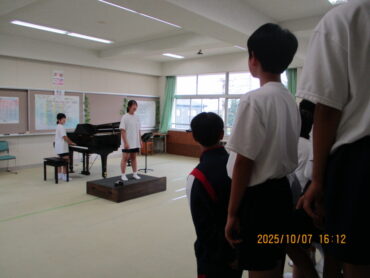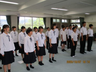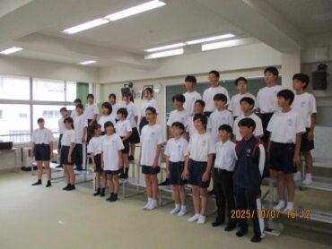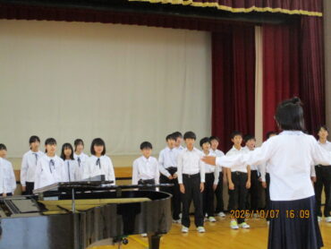 2025.10.8 1学年 全校生 放課後の歌練習が始まりました! 昨日、10月7日(火)より、全ての学級で放課後の合唱クラス練習が始まっています。 放課後の練習は、各クラス以外に、体育館、音楽室、福中ルームも使うことができます。昨日は、一年生が、特別教室を使う日でした。 今までは楽譜や歌詞を見ながら歌っている生徒が多かったのですが、ここにきて、何も見ずに歌えるようになってきました。さあ、いよいよラストスパートです!