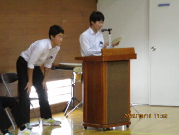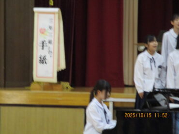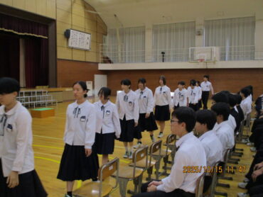 3年生の合唱コンクールリハーサルの様子です。出入りも確認。入場の仕方や姿勢も重要なポイントになります。