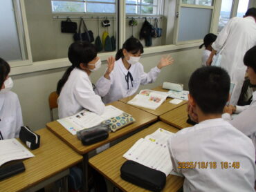 教科書にある「震災の中で」という資料、実際の場面ではどのようなものか、役割演技をしています。