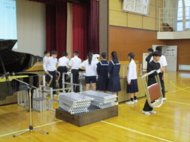 保護者席は、300席あまりを設置しました。コロナ禍以来、入場制限を設けずに鑑賞いただくのは久しぶりとなります。出入りはありますが、込み合うことが予想されます。後ろでの立ち見となることもあるかと思いますが、ご容赦くださいますようよろしくお願い申し上げます。