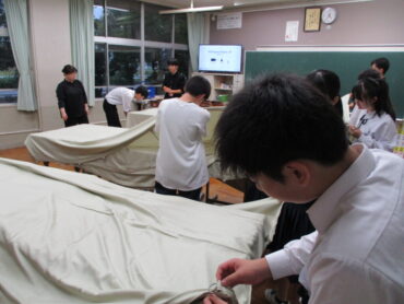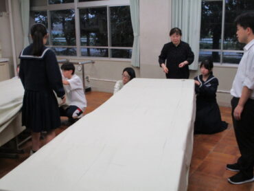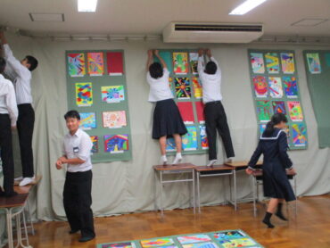 昨日、10月16日(木)の放課後、展示室や体育館の会場設営を行いました。特に体育館は、パイプ椅子を並べたりするので大変です。