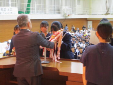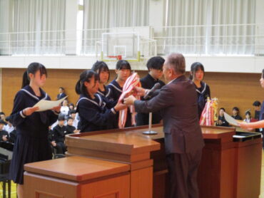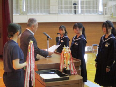最優秀のクラスには、校長先生から賞状とトロフィーを授与されました。