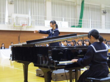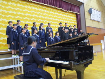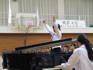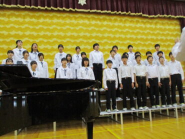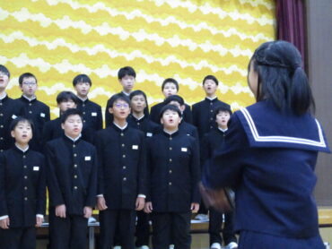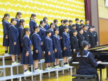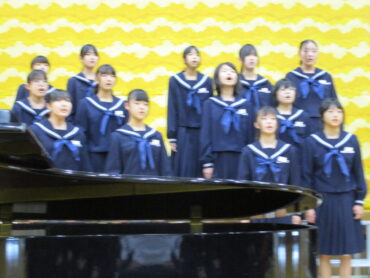 2025.10.18 NEW 3学年 1年生 緊張しました!ー初めての合唱コンクールー 1年生は、中学校生活初めての合唱コンクール。どの学級も精一杯頑張りました! トップバッターは、1年2組。楽曲は、「Believe」全クラスの中で一番手です。1年生らしいさわやかな歌声でした 2番手は1組。楽曲は「COSMOS] 毎日の練習の成果を十分に発揮することができました。 1年3組は、「マイバラード」