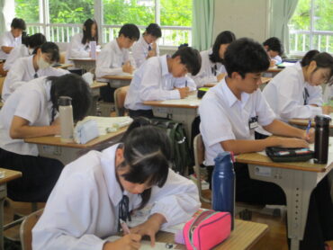 最初の15分間は、振り返りワークシートを記入します。7月からの合唱練習や六華祭に向けての準備を振り返ります。