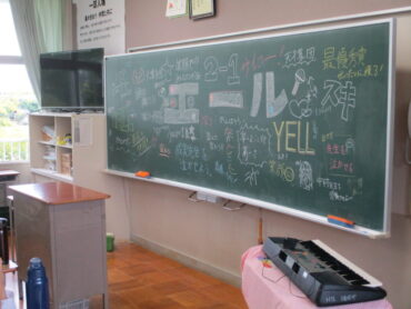合唱コンクールに向けての熱いメッセージが黒板に書かれています。