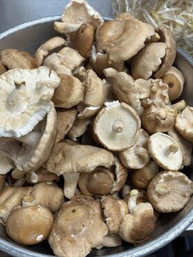 韓国ではキムチなど唐辛子を使った料理が多く、彩りよく盛り付けることで食欲を引き立ててくれます。ほうれん草と生椎茸は高岡市産、にんにくは福岡町産でした。
