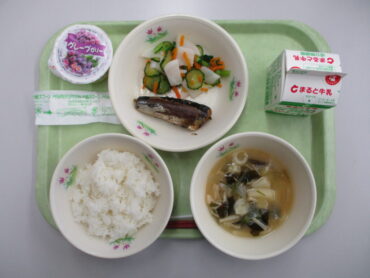 2025.10.23 1学年 2学年 3学年 全校生 10月22日の給食を紹介します 10月22日の給食は、ごはん 、牛乳、 鰯の生姜煮、かぶの柚子和え 、じゃが芋のみそ汁 、ぶどうゼリー です。 高岡市産小かぶ かぶ 葉 鰯の生姜煮は、柔らかく煮てあるので骨ごと食べることができます。 かぶは、高岡市産です。かぶの根は皮をむいて、葉もよく洗って使いました。 葉の部分はビタミンAになるカロテンを多く含む立派な緑黄色野菜です。今回は富山県産の柚子を使って爽やかなサラダに仕上げました。 ちなみにみそ汁に使用したえのきたけも富山県産です。