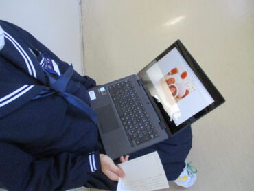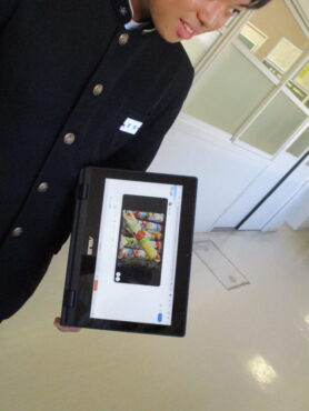 3年生の英語は、インタビューテストです。最初に、自分の好きなお菓子を英語で紹介しています。