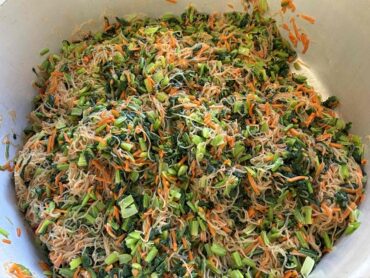 | 下味をつけたしらたき | 高岡野菜のごま和え |