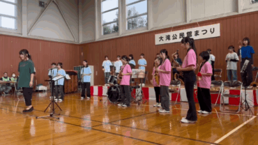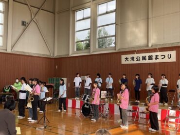 11月2日(日)、地元の大滝公民館祭のオープニングで、本校吹奏楽部が演奏を行いました。本公民館祭りは、敬老会も兼ねていて、多くのお年寄りや住民の方々によろこんでいただくことができました。