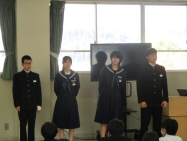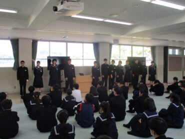 11月6日(木)5限、学年集会で各クラスの学級会長、副会長、学級書記委員の紹介がありました。