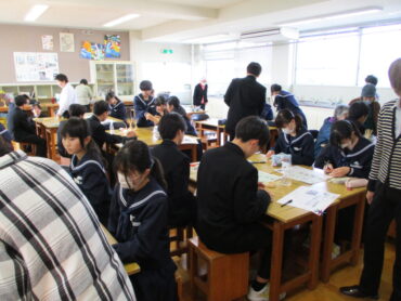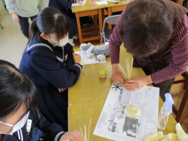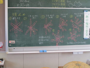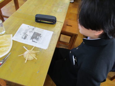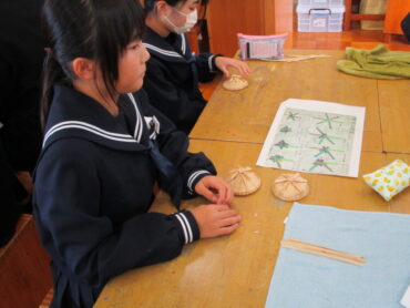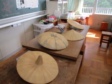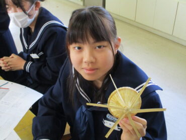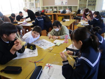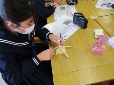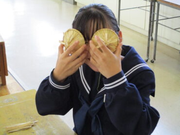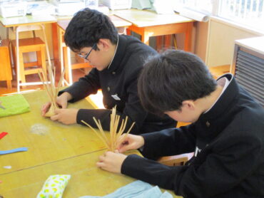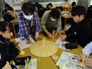 ものづくり・デザイン科で生徒たちは、高岡漆器の青貝塗り、そして福岡中学校独自の取組としてこの「豆笠づくり」ととても有意義な体験をすることができています。