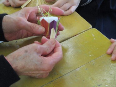 越中福岡の菅笠振興会のみなさん10名を講師としてお招きしました。