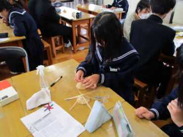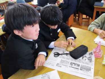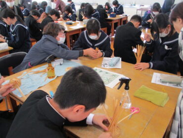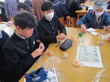 1年生の生徒たちは、中学生になったばかりの4月に福岡町「洋遊会」の雅楽を鑑賞し、そしてこの菅笠づくりと、地元福岡町に残る重要な遺産に触れることができてとても幸せです。