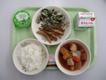 2025.11.7 1学年 2学年 3学年 全校生 11月7日の給食を紹介します 今日の給食は、地場産品献立です。メニューは、牛乳、ごはん、わかさぎの南蛮漬け、ごましそ和え、高岡の煮しめ、メロンゼリーです。 高岡市産のほうれん草 ごましそ和えのほうれん草は高岡市産、高岡の煮しめの里芋は福岡町産です。旨みたっぷりの給食を味わいました。