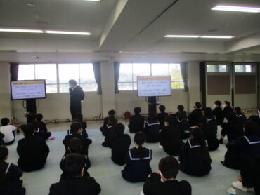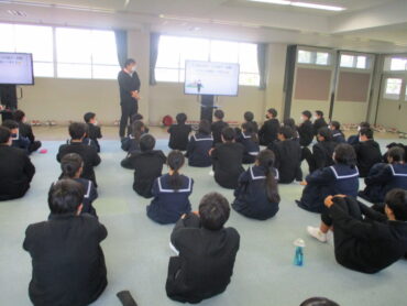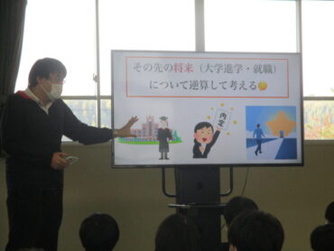 2年生学年集会 進路学習 将来について逆算して考えよう!