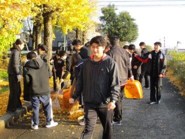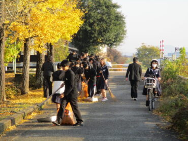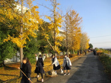 生徒会主催の清掃ボランティア「銀杏ロード清掃」は最終回。この日は3年生が担当です。