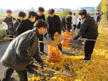 生徒会ボランティア 銀杏ロードの清掃 今回は3年生!