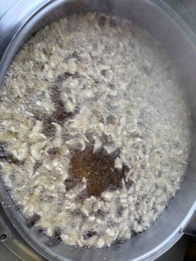| 鯉にでんぷんを付ける | 鯉をカリッと揚げる |