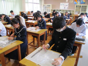 3年生の美術科における篆刻もいよいよ仕上げの段階に入ってきました。