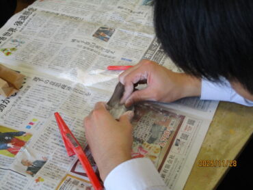 美術室からは、彫刻刀で高蝋石を削る音、そしてやすりで磨く音だけが静かに聴こえてきます。