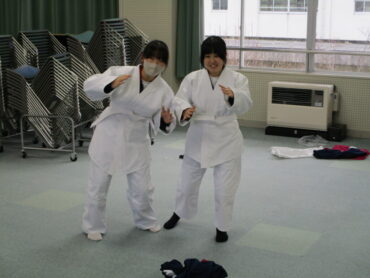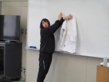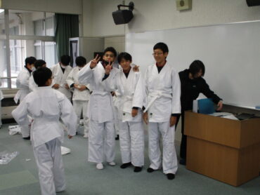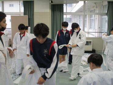 こういう時には、柔道部の生徒は活躍します。柔道着を正しく着ることの模範を示してくれるからです。