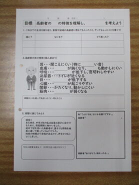3年家庭科 高齢者の身体的な特徴について疑似体験を通して理解しよう!