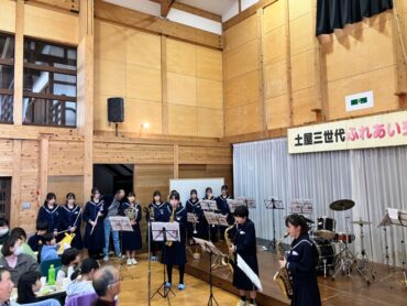 会場には、夏に吹奏楽部を引退した3年生も地区行事として参加していたため、飛び入りで一曲参加してもらい、ドラムを演奏してもらいました。
