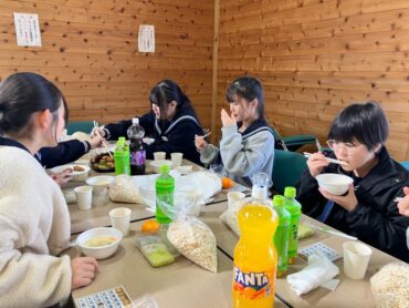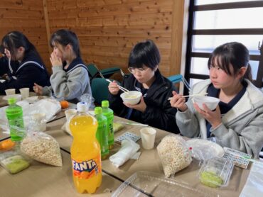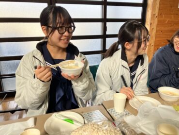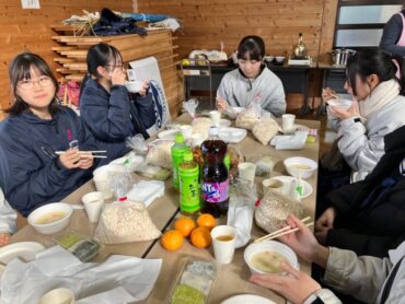 吹奏楽部員も地域の方と一緒にお昼ご飯をいただきました。炊き立てのお餅や、温かいお味噌汁はとてもおいしかったです。ありがとうございます。