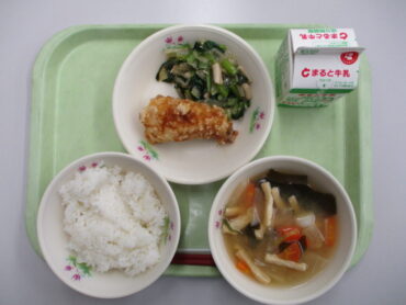 2025.12.11 1学年 2学年 3学年 全校生 12月10日の給食を紹介します 12月10日の給食は、ごはん 、牛乳、 赤魚のたれがけ 、小松菜のオイスターソース炒め、大根とわかめのみそ汁でした。 小松菜は高岡市産、大根は魚津市産、しめじは富山県産です。