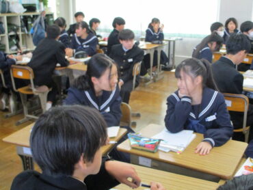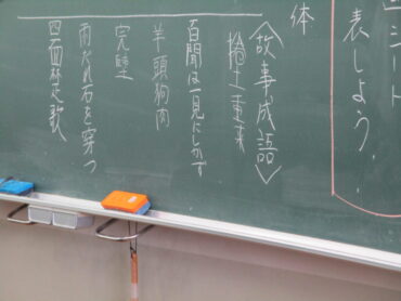 2025.12.12 1学年 1年国語 故事成語で四コマ漫画を作ろう 1年生は、今、故事成語の学習をしています。1年3組は、故事成語の学習で作成した四コマ漫画の発表会をしました。 「捲土重来(けんどちょうらい)」など、なかなか難し故事成語も出てきました。