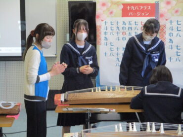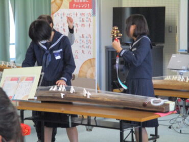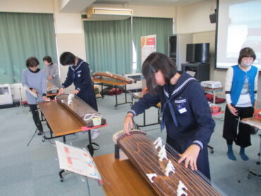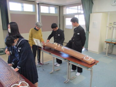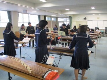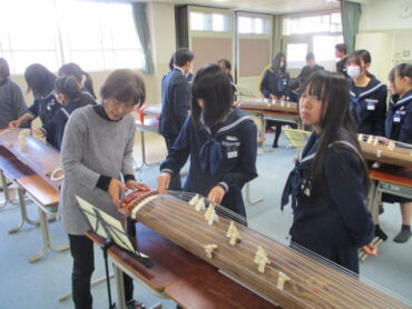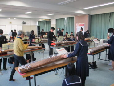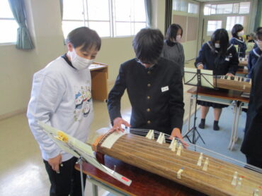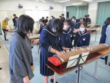 音楽科では、いつもこの時期日本古来の楽器に親しむ授業が行われます。先生は、福岡町芸術文化協会に所属の2つのグループの方々です。毎年、本校に指導に来てくださっています。