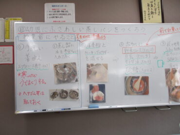 課題は、「幼児にふさわしい蒸しパンをつくろう」です。