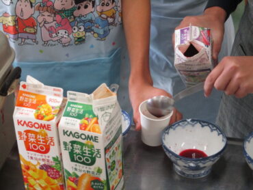 味は、3種類の野菜ジュースから選びます。もちろん果汁100パーセント。幼児食なので、アレルギーにも配慮して牛乳ではなく豆乳を使います。