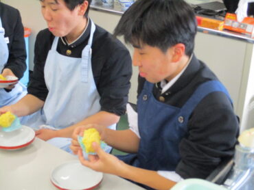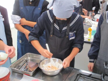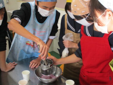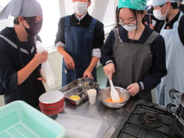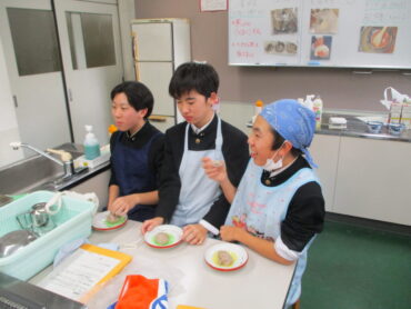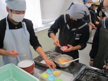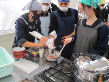 調理している生徒たちの表情は、ニコニコしていてとても微笑ましいです
