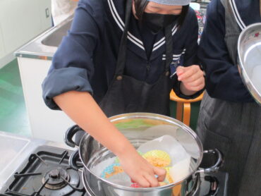 3年生の生徒たちが楽しみにしている調理実習。今年初めてで、中学校生活最後の調理実習です。今週、3年2組から始まって、最後は3年1組で行われました。