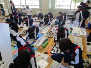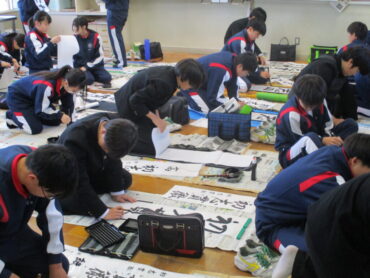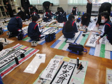 3年生にとっては、最後の書初め大会。年明けの本番では、気持ちを込めて書いてほしいものです。