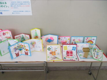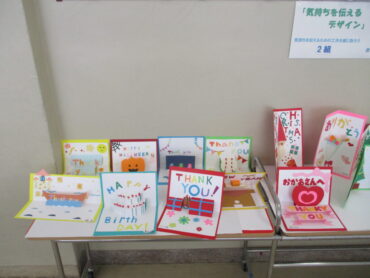 1年生の美術の時間、生徒たちはポップアップカード制作しました。様々な工夫が見られます。今日、明日と3階、1年生フロアーに展示してあります。