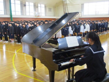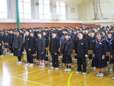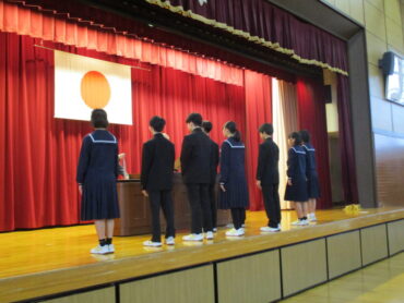 校長先生からは、二学期を振り返ってと書初めをして心新たに新年をむかえることの二つのお話がありました。式の終わりには校歌を大きな声で斉唱しました。
