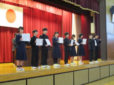 受賞の後は、1年生、2年生の代表生徒が意見発表をしました。
