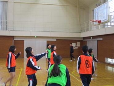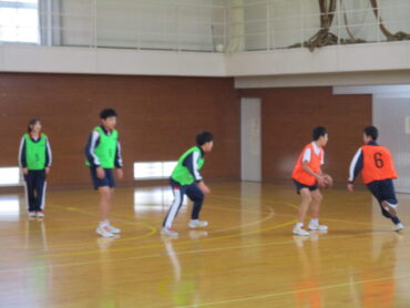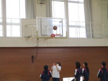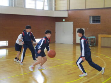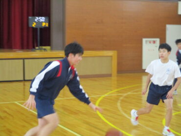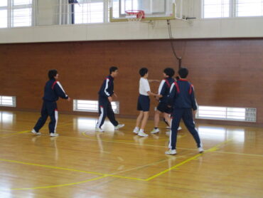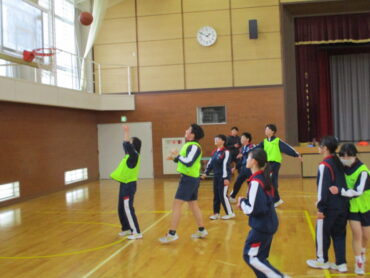 2年生の体育は今、バスケットボール!2年1組の授業です。