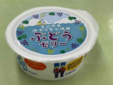 「海洋深層水ゼリー」は、富山湾の深さ200メートルより深いところにある海水を使ったゼリーです。太陽の光が届かない深さにあるきれいな海水には、ミネラルが多く含まれていて栄養がたっぷりです。