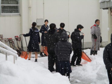 2026.1.28 NEW 1学年 全校生 1月28日の除雪当番は 1年2組! 1月28日の除雪当番は、1年2組でした。 小雪が舞っていましたが、今朝の積雪はわずかでした。凍って滑りやすくなっているとこを削ってくれました。 みなさん、朝早くからご苦労様でした。