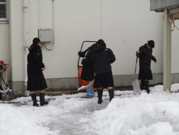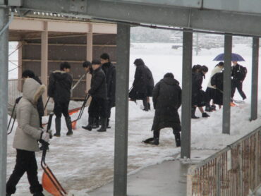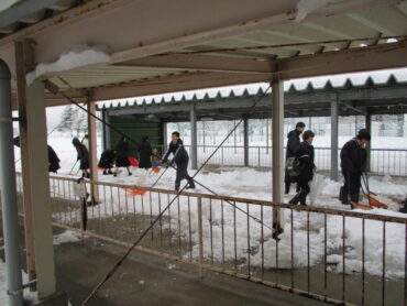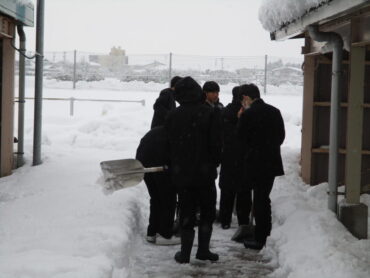 2026.1.29 1学年 全校生 1月29日の除雪当番は 1年3組! 1月29日の除雪当番は、1年3組でした。 今朝の積雪は、うっすらと積もった程度でしたが、明日、新入生説明会があるので、3組の皆さん頑張ってくれました。 みなさん、朝早くからご苦労様でした。