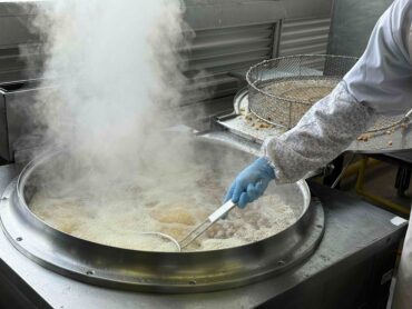 | 大豆・豚角肉・レバーに粉を付ける | カラッと揚げる |